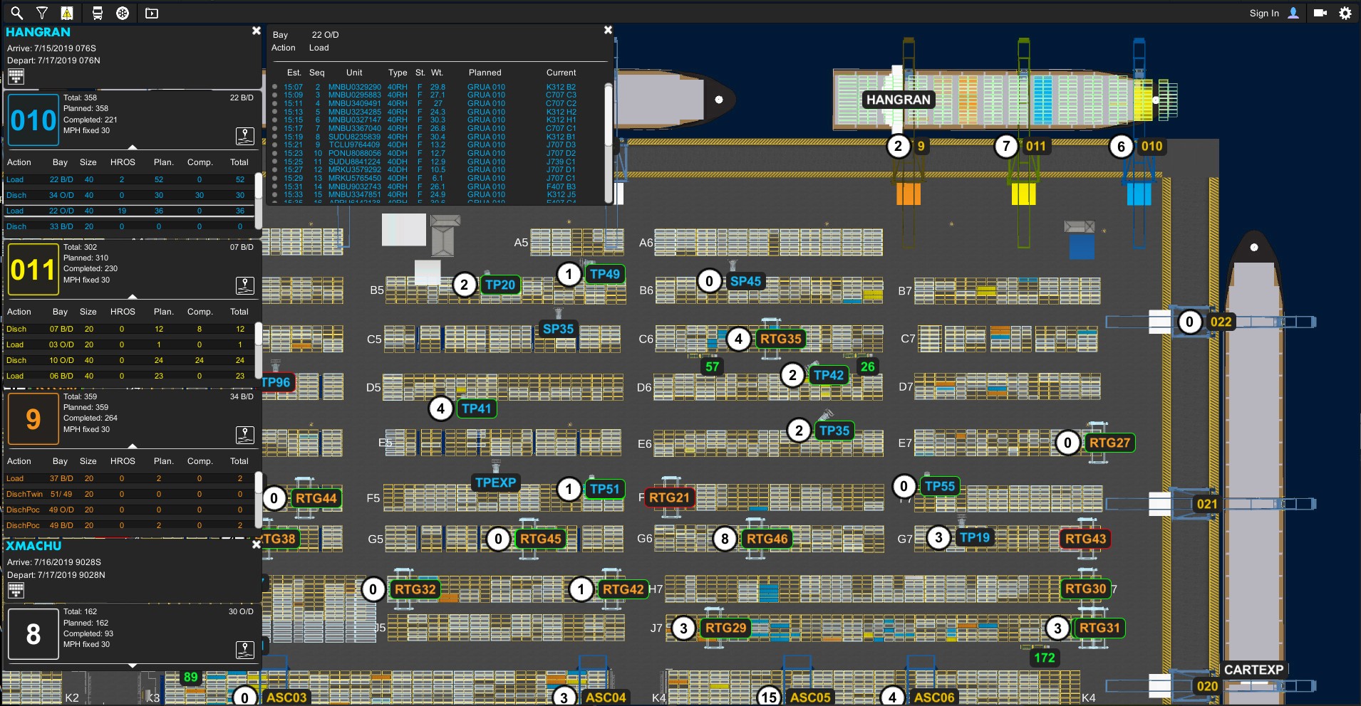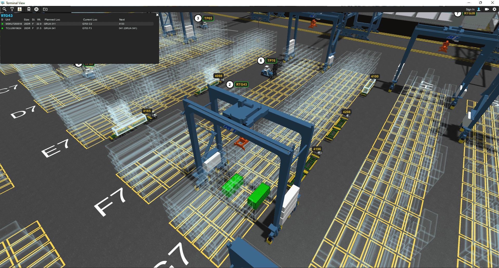Yard vehicles rendered live on-screen